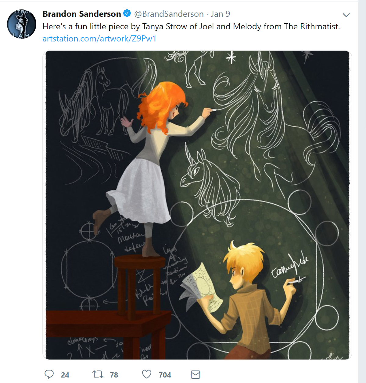 You don’t always have to add a name to the image if that’s not the aesthetic you want. Here, fantasy author Brandon Sanderson credits Tanya Strow by dropping her name and adding a link to an outside website. This is completely acceptable.